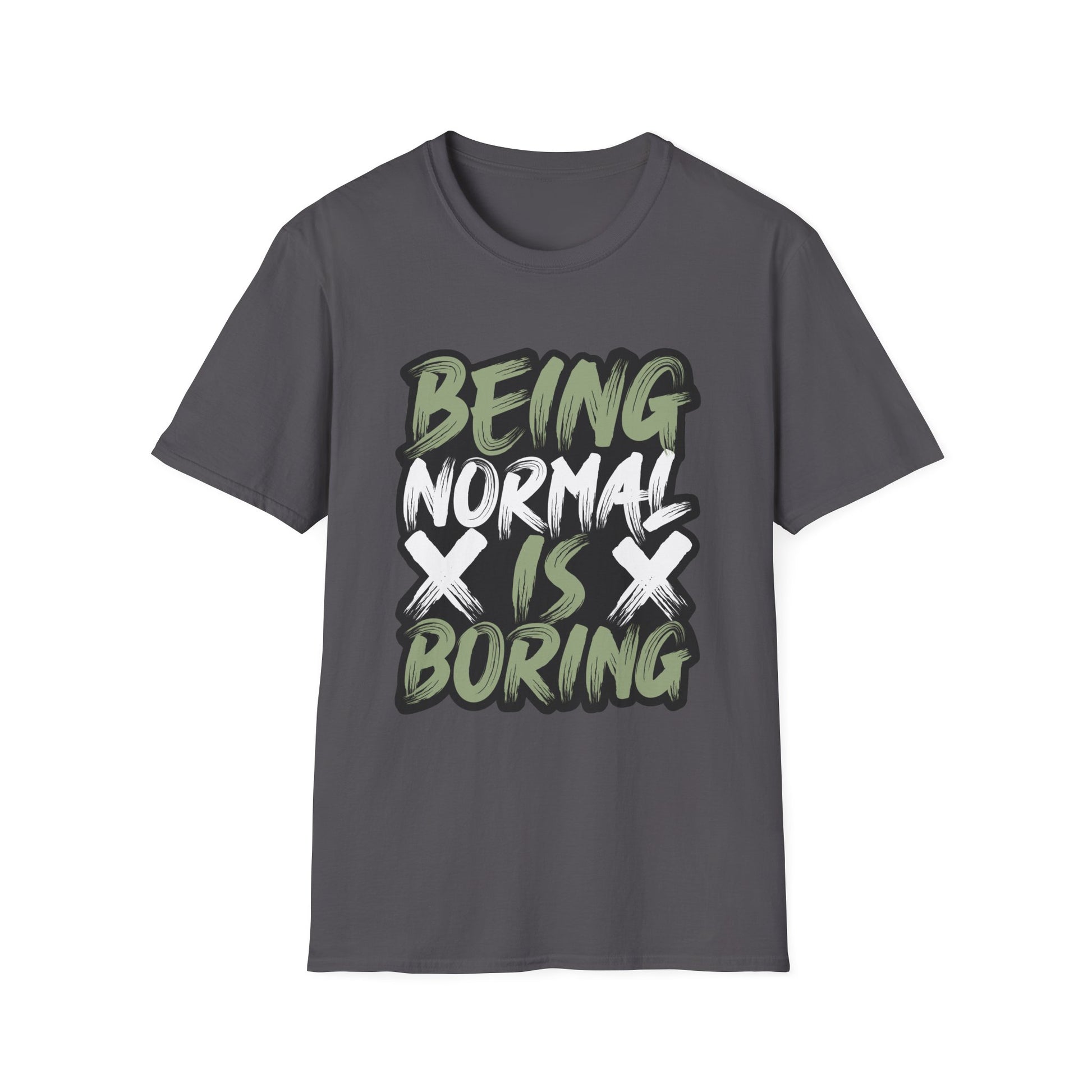 Forget fitting in — this tee is for the standouts. The Normal Is Boring design throws conformity out the window with expressive brushstroke lettering and bold white Xs that mark the spot where average gets crossed out. With green and white text on a black canvas, it’s a visual shout-out to anyone who lives loud, thinks different, and refuses to blend in.