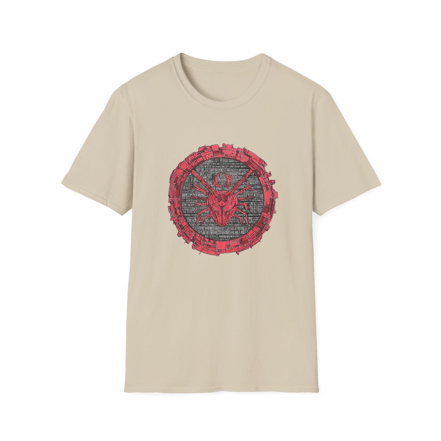 Born in the code. This striking digital artwork features a mechanical spider rendered in black and red lines, surrounded by a circular border of circuit-like geometry and a backdrop of binary code. With its symmetrical precision and gritty texture, this design evokes themes of digital infiltration, cyber mythology, and futuristic identity. The word “Legends” anchors the piece—suggesting a story written in data and defiance.