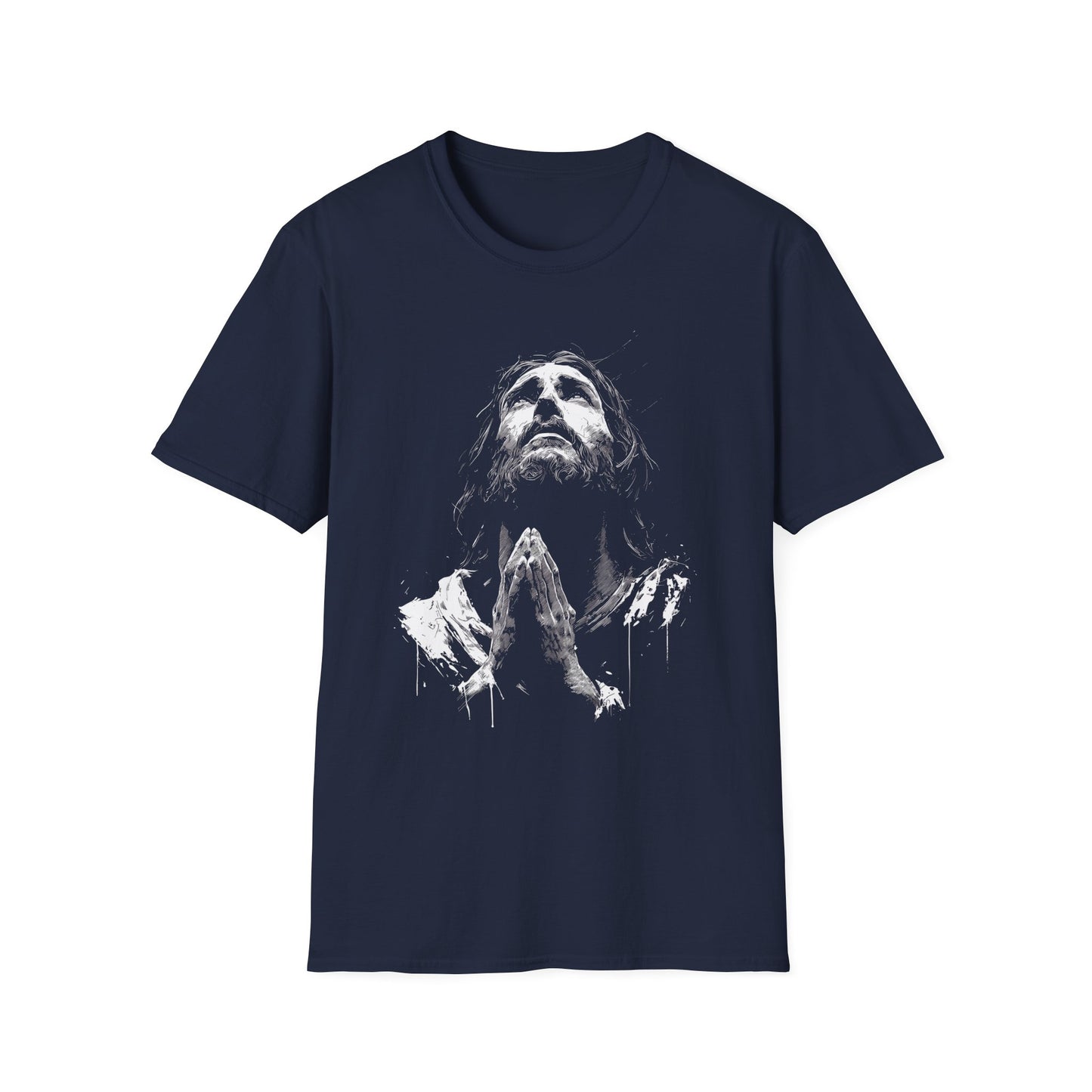 In the stillness of surrender, strength is born. This striking sketch-style design captures Jesus in a moment of deep prayer—eyes lifted, hands clasped, heart open. Rendered in white on black, the image evokes Gethsemane’s quiet agony and divine resolve.
