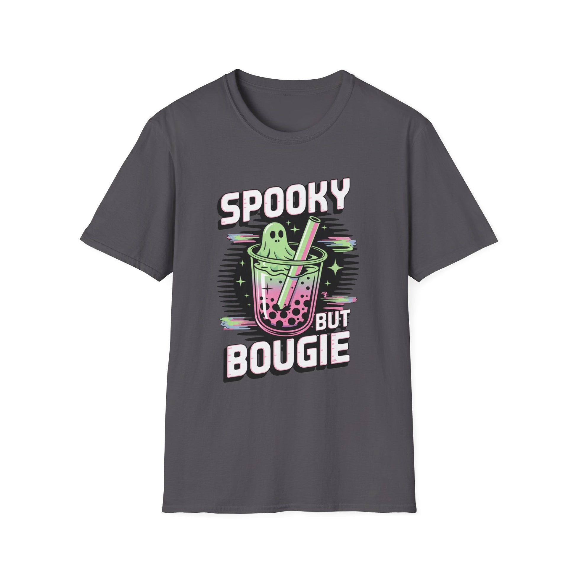 Ghostly Bubble Tea Unisex Softstyle T-Shirt, Spooky Sip, Halloween Tee, Bougie Spirit Shirt, Pastel Sparkles Shirt, Haunted Beverage Top