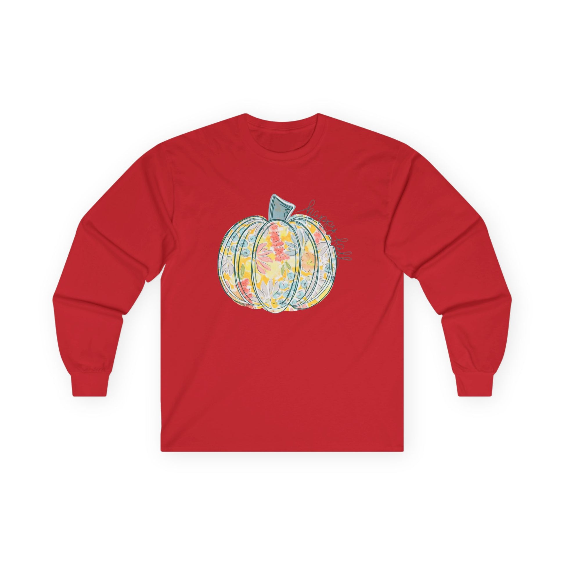 “Happy Fall Floral Pumpkin” Long Sleeve Tee – Bloom & Gourd Edition
