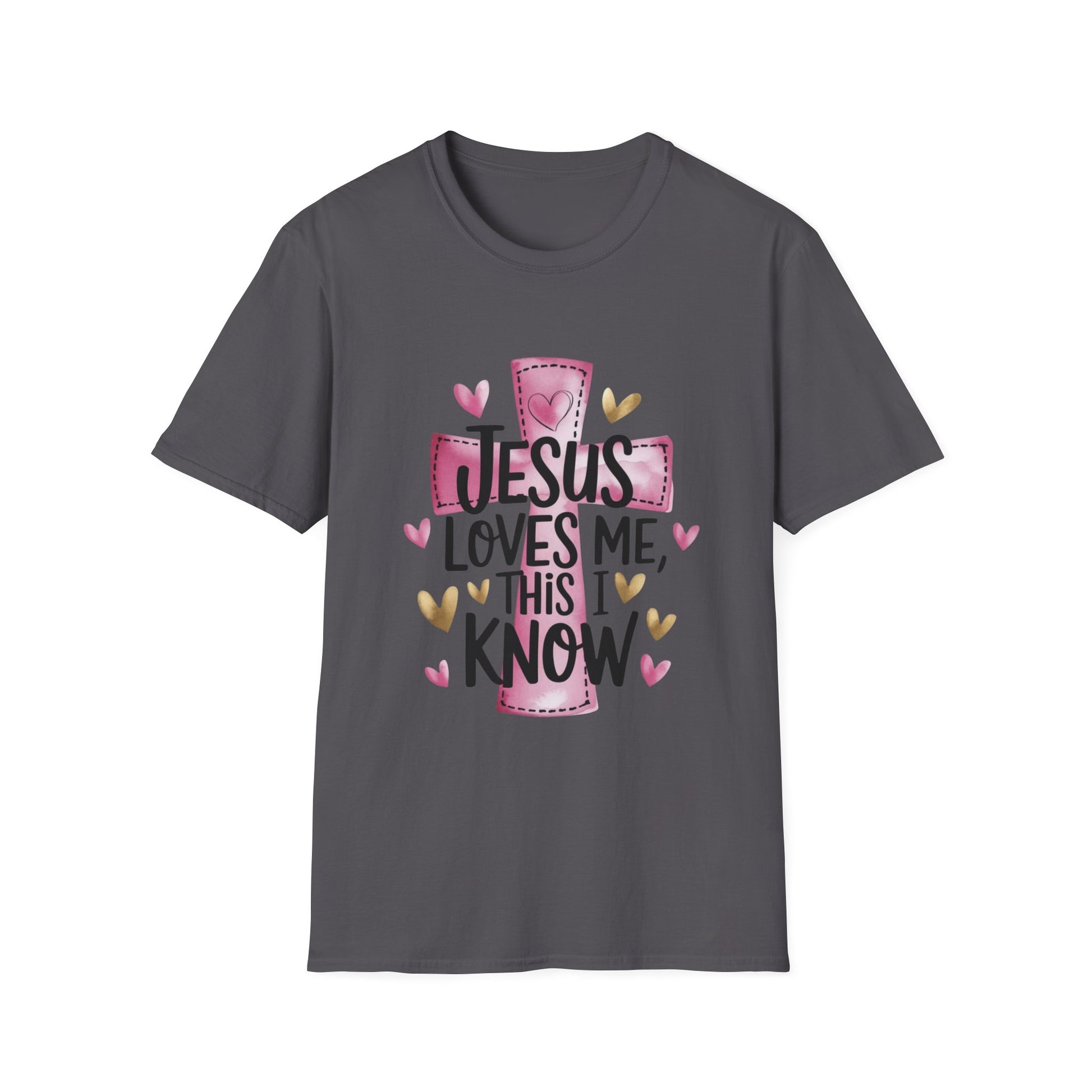 Some truths never fade. This “Jesus Loves Me – This I Know” tee brings the beloved message to life with a stitched pink cross, golden and blush hearts, and bold black lettering that pops with clarity. Whether you’re gifting it to a child, wearing it as a daily affirmation, or sharing the gospel with gentle strength, this design radiates love, comfort, and spiritual confidence.