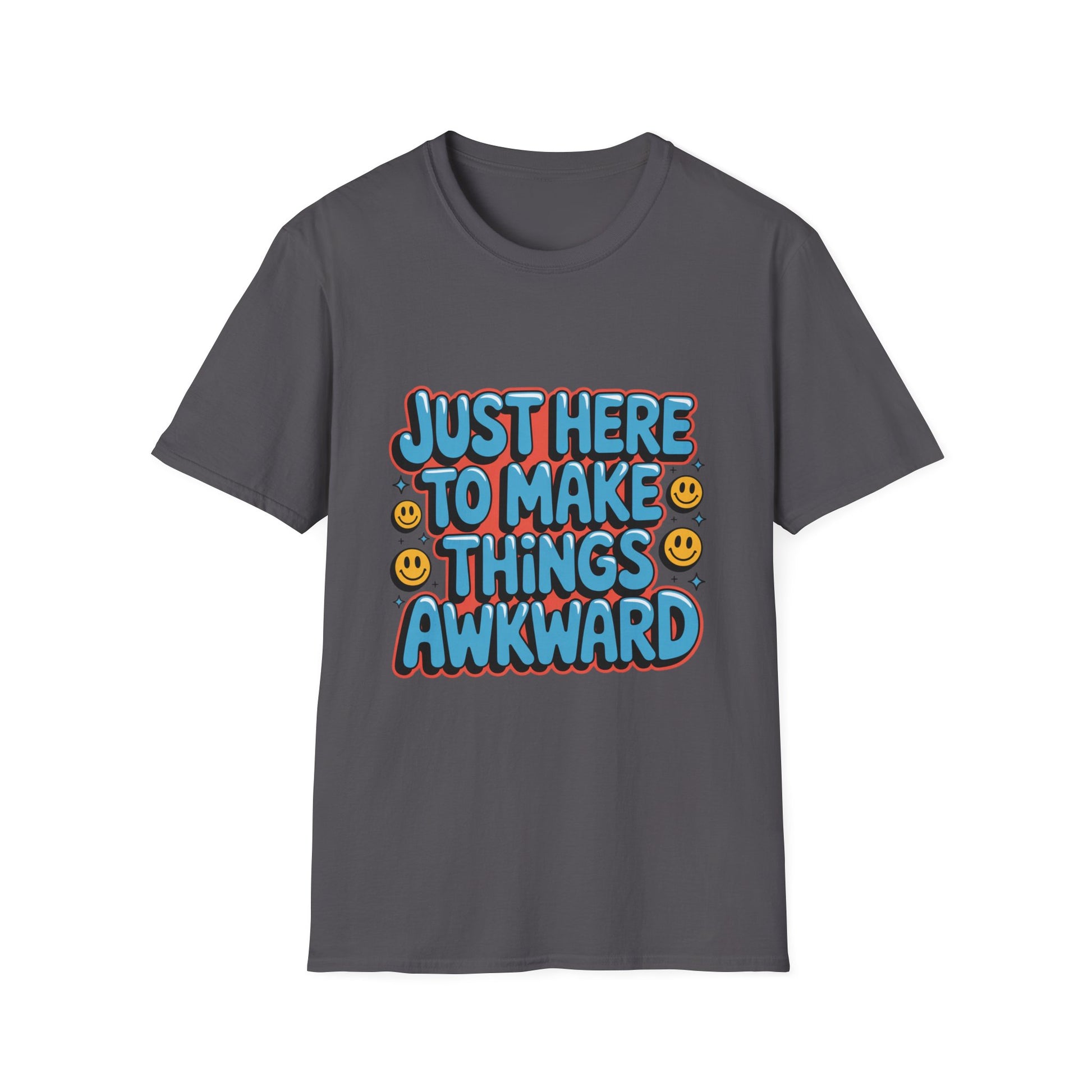 This tee doesn’t just break the ice—it shatters it, then nervously laughs. With bold blue bubble letters outlined in red and surrounded by mischievous smiley faces and twinkling stars, it’s a wearable warning label for anyone who’s about to overshare, interrupt, or ask “So... what are we?”