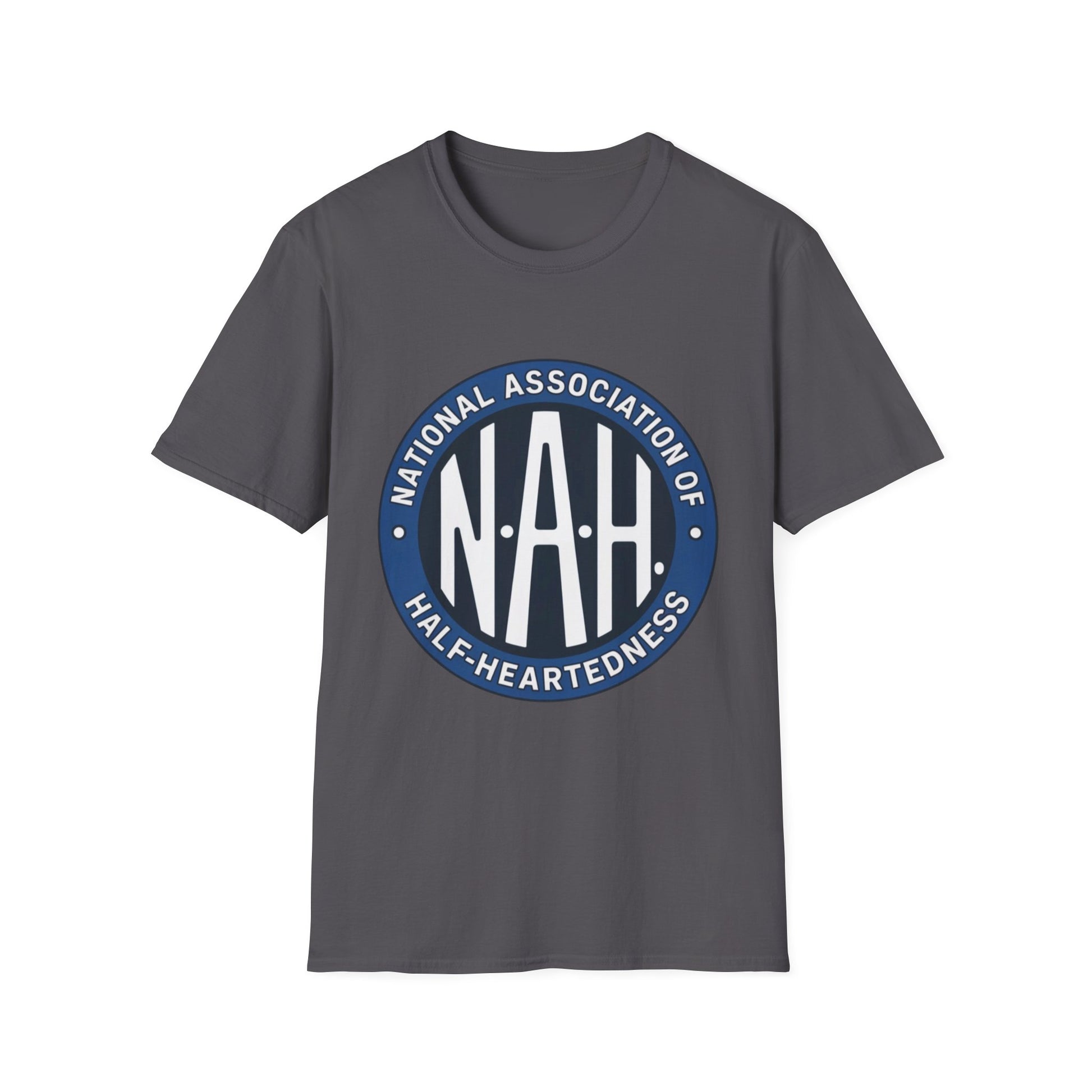 For those who give just enough effort to say they showed up. This badge-style design features a crisp blue circular logo with “NATIONAL ASSOCIATION OF HALF-HEARTEDNESS” wrapped around the bold acronym “N.A.H.” in the center. It’s a hilarious nod to the art of indifference, perfect for anyone who’s mastered the shrug-and-move-on lifestyle.