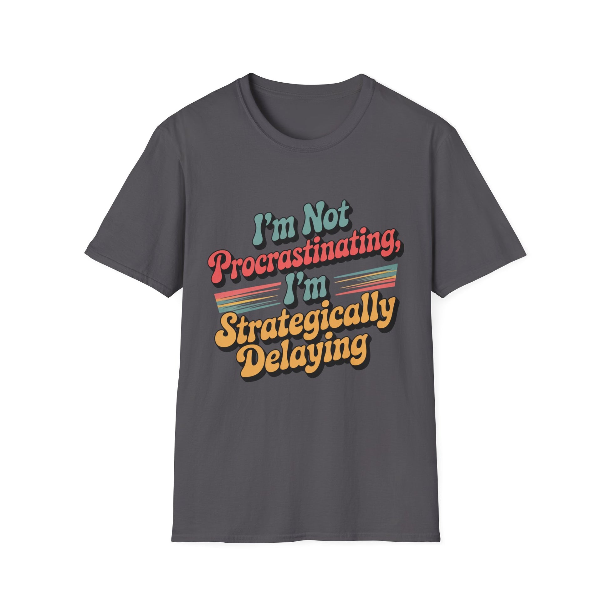 Why rush when brilliance takes time? This retro-inspired tee flips the script on procrastination with bold typography, vibrant colors, and a message that celebrates intentional delay. Featuring dynamic horizontal accents and playful fonts, it’s perfect for creatives, students, and anyone who thrives under just enough pressure.
