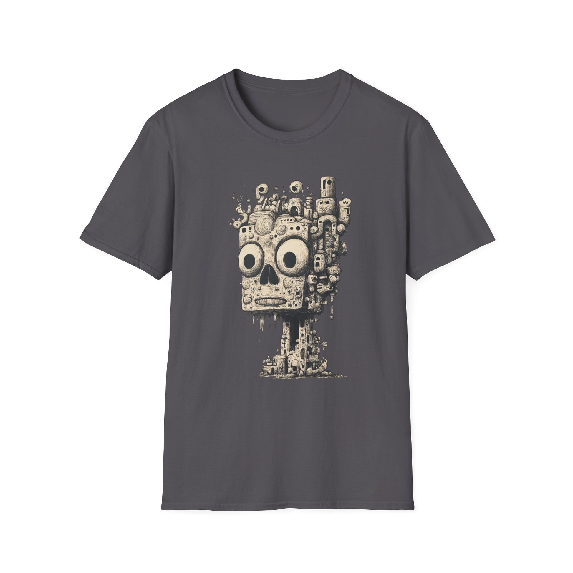 Where architecture meets afterlife. This mind-bending design fuses a skull’s hollow gaze with a maze of towers, pipes, and staircases-like a forgotten metropolis built on memory and machinery. It’s part dystopian dream, part mechanical myth, and 100% conversation starter.